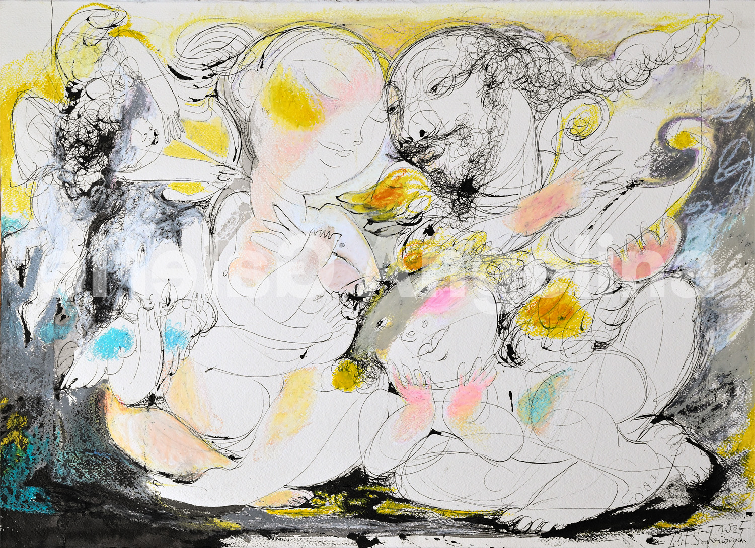 Mixed media on paper 22 × 29 7/8 in | 56 × 76 cm Unique work, hand-signed by artist Includes Certificate of Authenticity Frame not included
