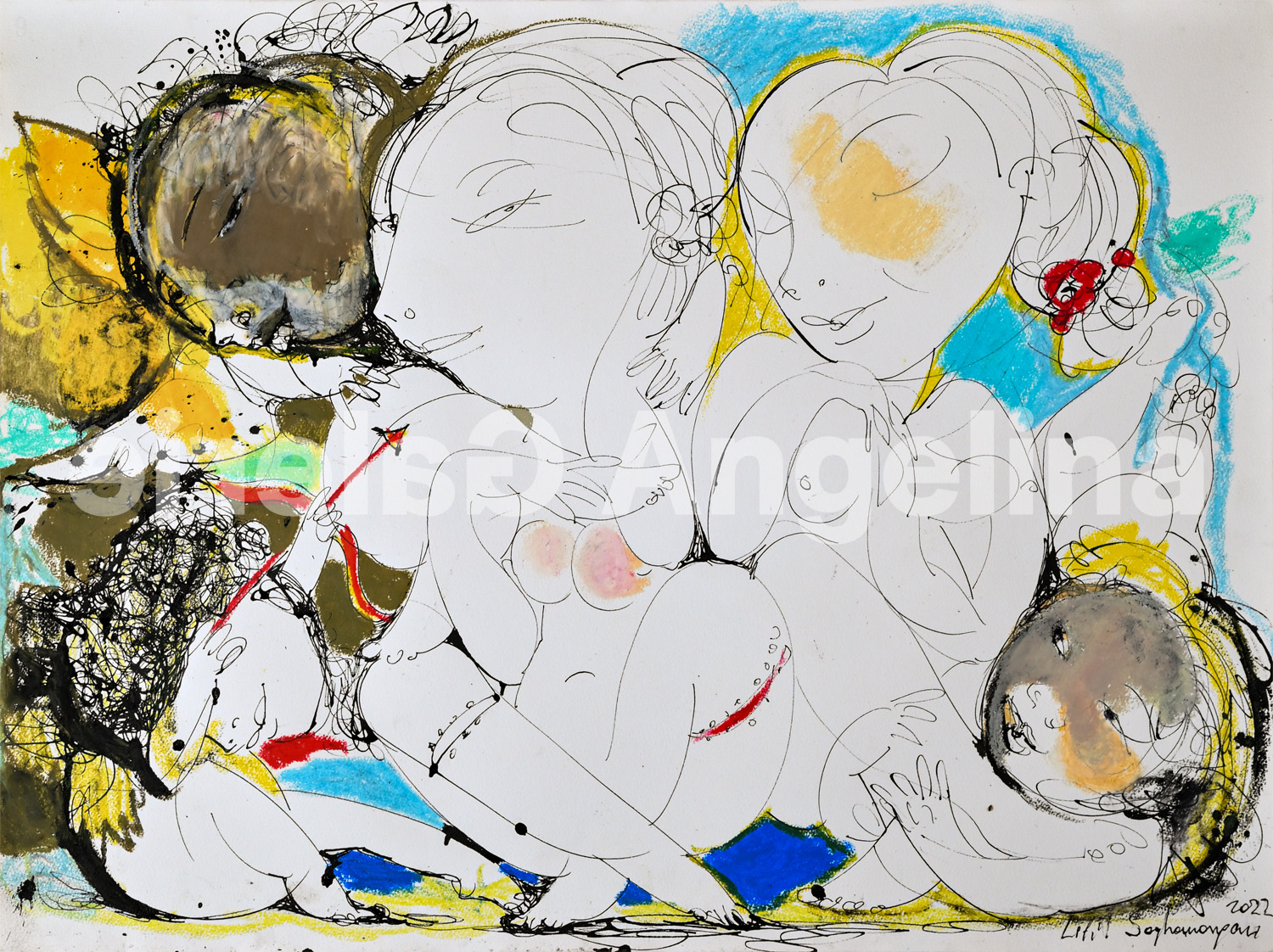 Mixed media on paper 22 × 29 7/8 in | 56 × 76 cm Unique work, hand-signed by artist Includes Certificate of Authenticity Frame not included